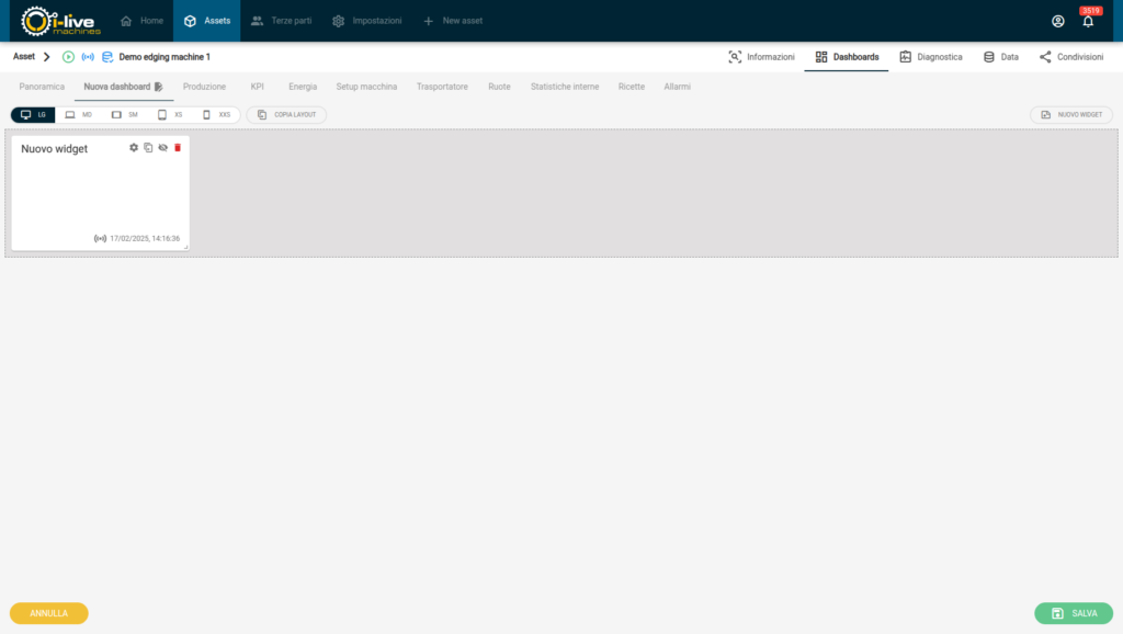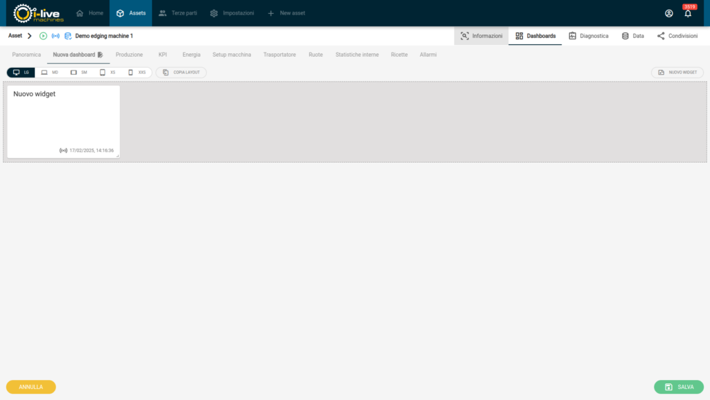 Per assegnare/modificare un widget premere l’icona a forma di “ingranaggio“; si aprirà un modale.