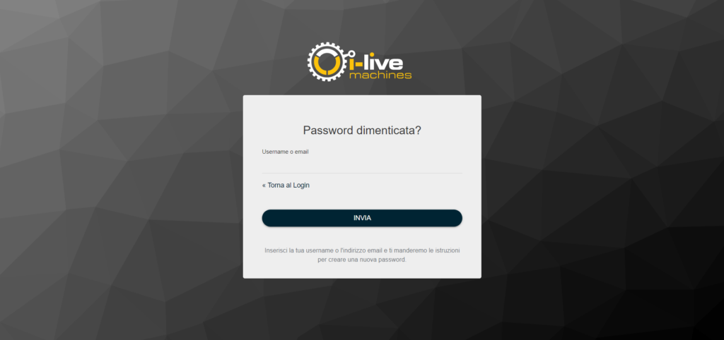 Inserire Username oppure email relativa all’account del quale si desidera reimpostare la password e premere INVIA.
