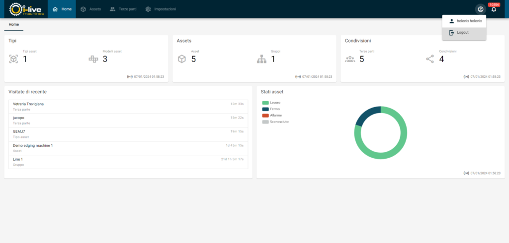 Per poter accedere a ILVM digita all’interno della barra degli indirizzi del tuo browser, l’indirizzo che ti è stato fornito in fase di registrazione (es. https://NOMEAZIENDA.ilivemachines.com)