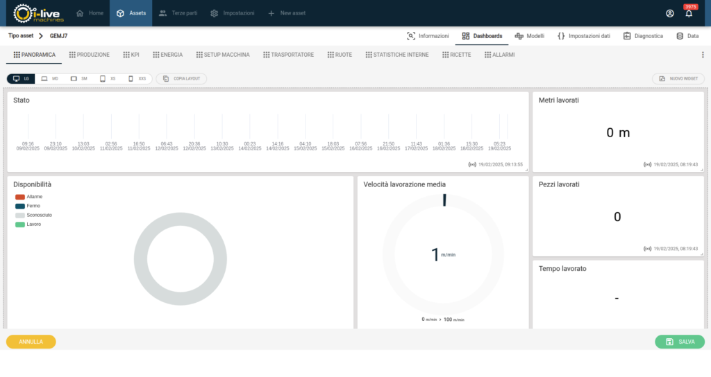 Le dashboard che vengono create in questa sezione, verranno poi ritrovate nella sezione dashboards dell’asset associato e per il quale è stata configurata la dashboard così definita.
