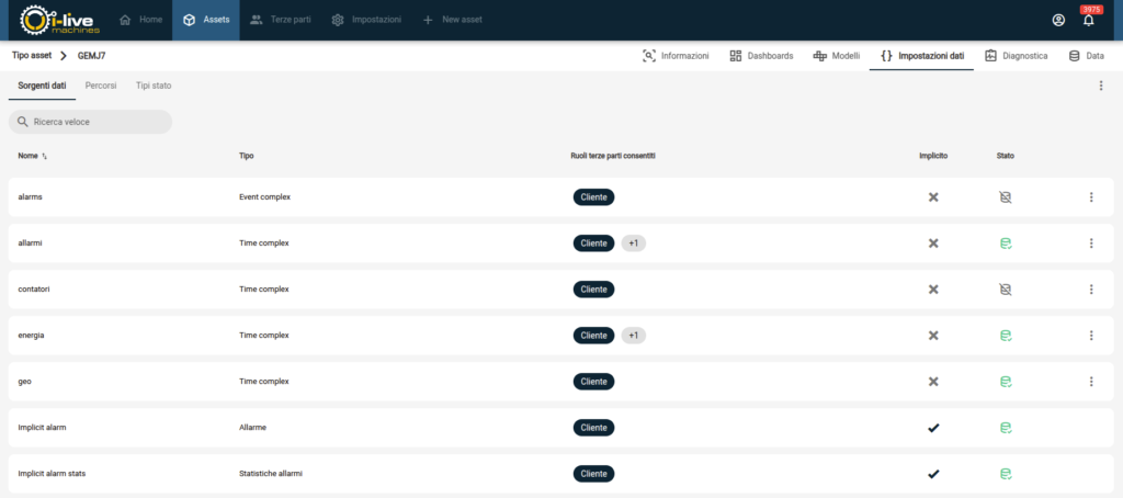 In questa pagina è possibile configurare le sorgenti dati del tipo asset.