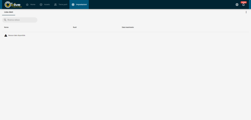 All’interno della sezione Client viene visualizzata una lista con tutti i client che hanno accesso al sistema.